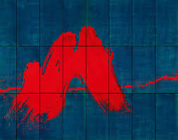 à Rome avec d’immenses traits rouges sur fond bleu cyan. Pour ce faire, elle